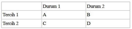 Yukarıda yer alan tabloda aşağıdaki hangi tercih ve durumun gerçekleşmesi koşuluyla C sonucu elde edilir?