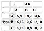 Yukarıdaki oyun tablosunda denge aşağıdakilerden hangisi olabilir?