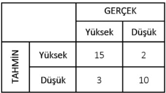 Yukarıda verilen kontenjans tablosuna göre doğru tahmin edilen Düşük risk grubundaki müşterilerin sayısı aşağıdaki seçeneklerden hangisinde doğru biçimde verilmiştir?