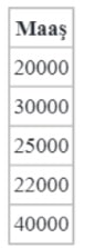 Yukarıda verilen Maaş niteliğinin kategorik hale getirilebilmesi için aşağıda verilen yöntemlerden hangisi kullanılabilir?